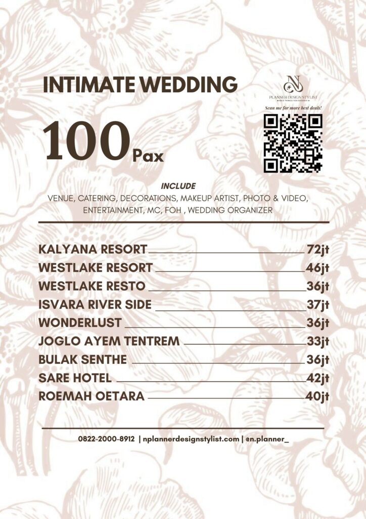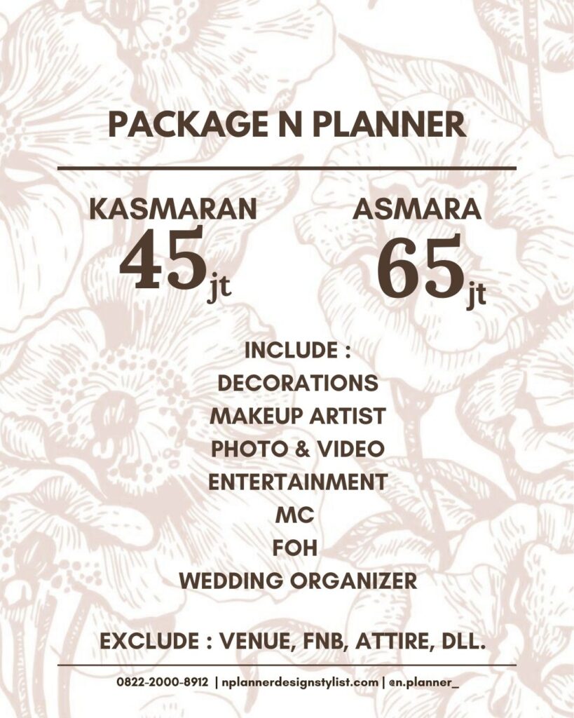 Biaya Wedding Package disesuaikan dengan kebutuhan dan request nominal dari client berdasarkan diskusi bersama.